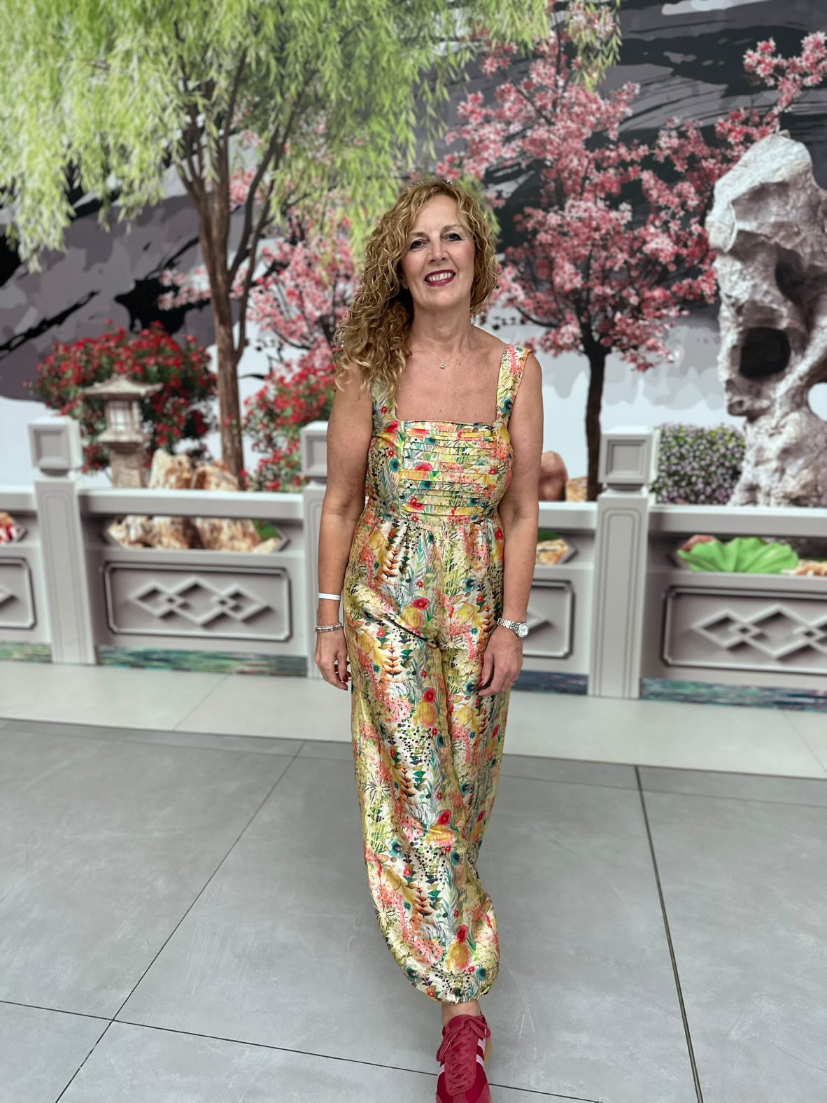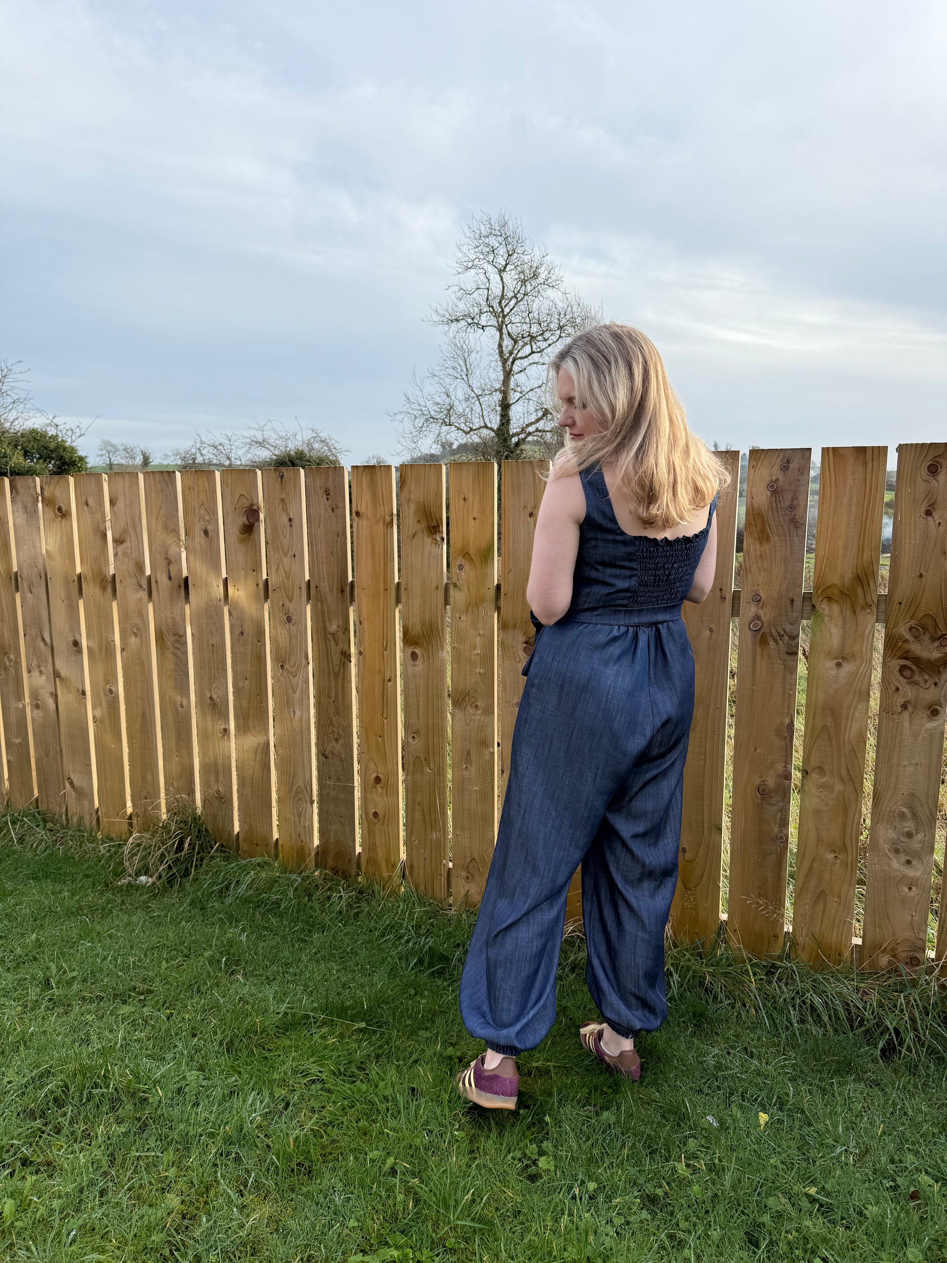 The Jen Jumpsuit has style and comfort all in one. The fitted bodice has a shirring panel at the back for optimum comfort and loose trousers which can be cuffed at the bottom for an on-trend style.