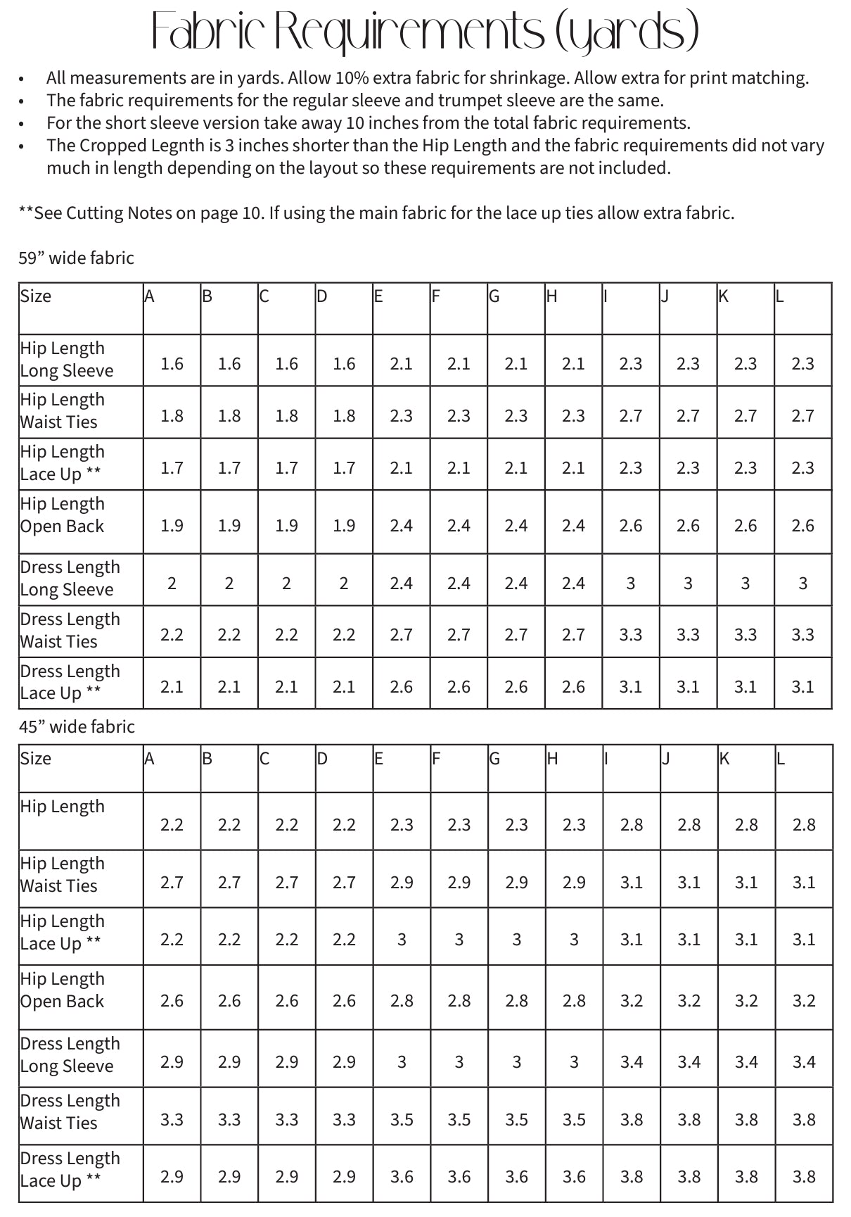 Fabric will play a key role in the finished style of this shirt. For a tradional shirt style choose a cotton or lightwieght linen. If you want something with a more romantic vibe choose a fabric with more drape like a viscose or lightweight Tencel. If you choose a plain fabric you can make details stand out with a contrast ribbon for the lace up or statement buttons. There are so many options to make this shirt totally you!