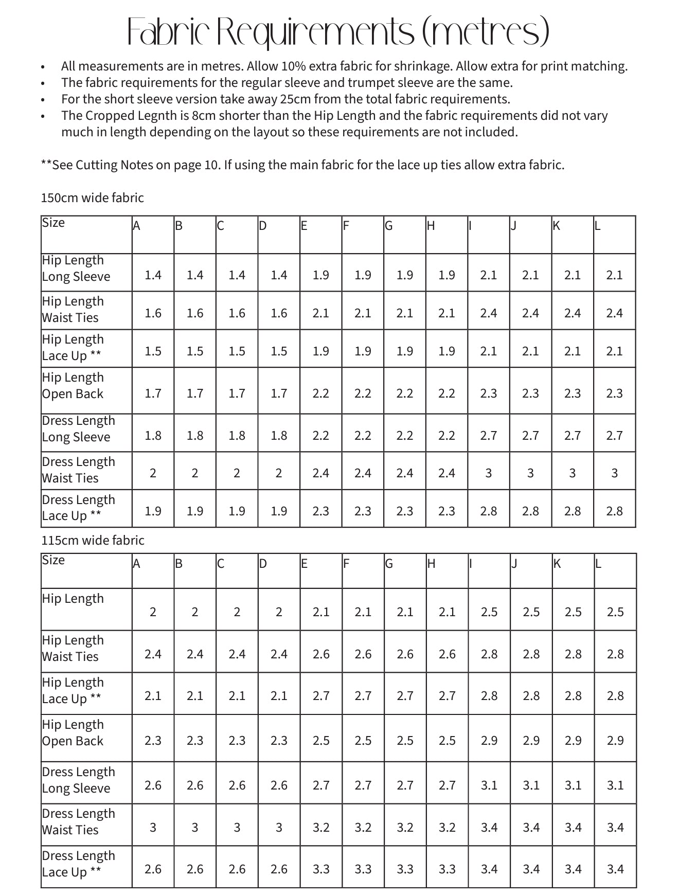 This pattern will work best with light to medium weight fabrics (up to 230gsm) with no stretch.